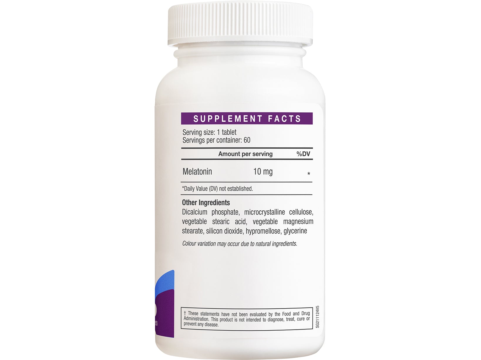 - แต่ละแท็บเล็ตมีเมลาโทนิน 10 มก. ออกแบบมาสำหรับผู้ที่อาจไม่ตอบสนองต่อความสามารถที่ต่ำกว่าเช่น 3 มก. หรือ 5 มก.