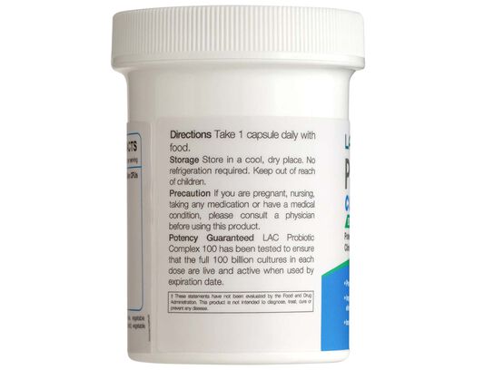 LAC โปรไบโอติกคอมเพล็กซ์ 100ได้รับการทดสอบเพื่อให้แน่ใจว่าไฟล์ เต็ม 100 พันล้านวัฒนธรรมในแต่ละปริมาณจะมีชีวิตและใช้งานเมื่อใช้โดยวันหมดอายุ