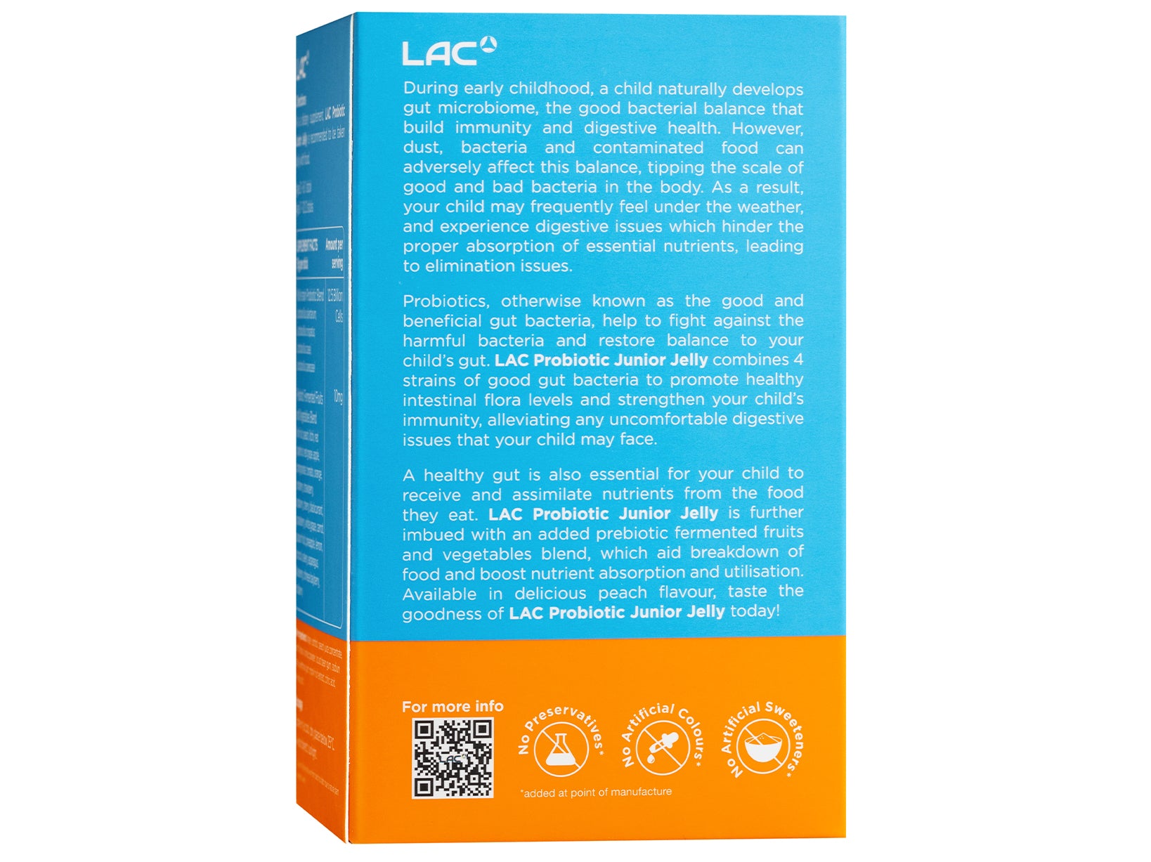 - 12.5 พันล้านเซลล์ของโปรไบโอติกที่ใช้งานอยู่ ทุกสายพันธุ์ได้รับการศึกษาอย่างดีเพื่อส่งเสริมสุขภาพทางเดินอาหารและผิวหนังที่เหมาะสมสำหรับเด็ก
