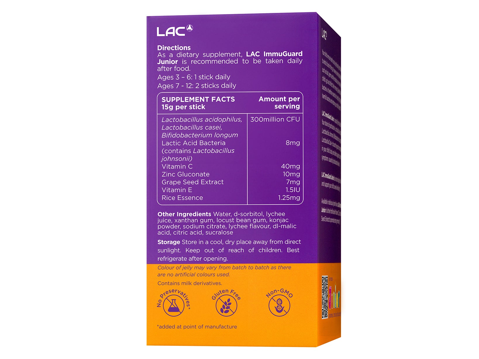 Lac Immuguard Junior เป็นอาหารเสริมที่ผสมผสานแบคทีเรียที่เป็นมิตรสี่สายพันธุ์ที่ออกแบบมาเพื่อสนับสนุนความเป็นอยู่โดยรวมของลูกและสุขภาพทางเดินอาหาร: