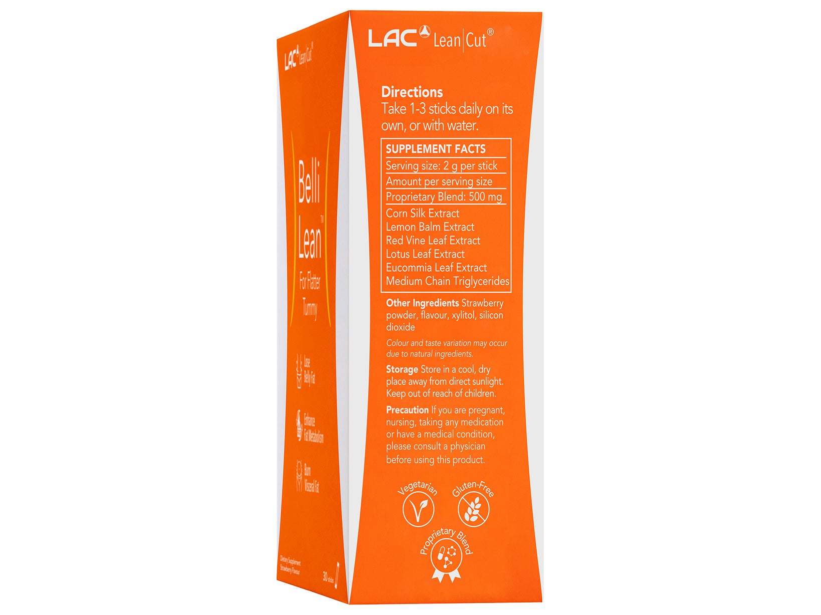 - สูตรด้วยการผสมผสานที่เป็นกรรมสิทธิ์ของส่วนผสมที่กำหนดเป้าหมายโดยเฉพาะการลดไขมันรอบกลางของคุณ